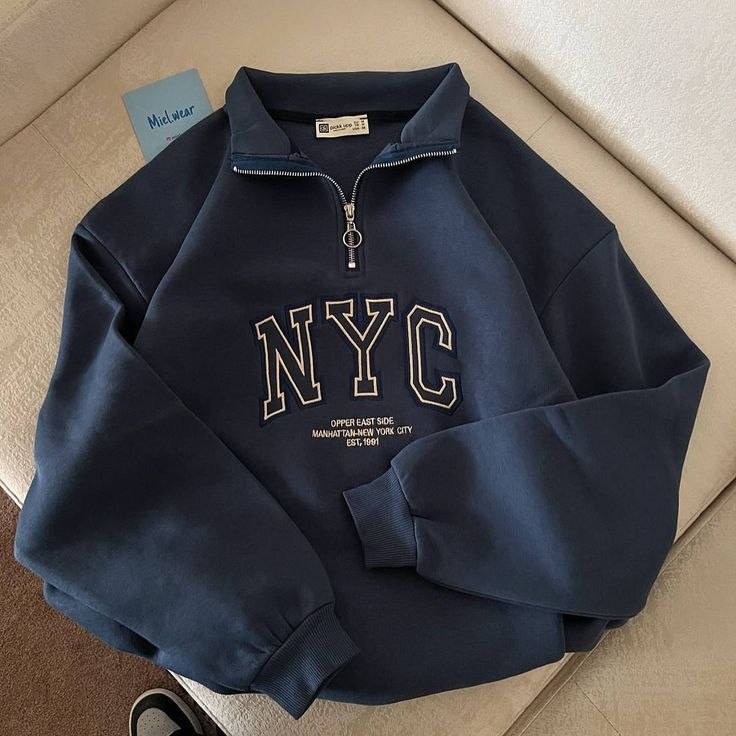 عبر عن روح المدينة مع سويت شيرت 'NYC' المصمم لنمط حياة عملي وسريع. يتميز بياقة عالية وسحاب عصري يمنحك التغطية والراحة، مع تصميم جرافيك كلاسيكي يضفي لمسة حيوية. مثالي للتنسيق مع ملابسك اليومية المفضلة لإطلالة حضرية متميزة."