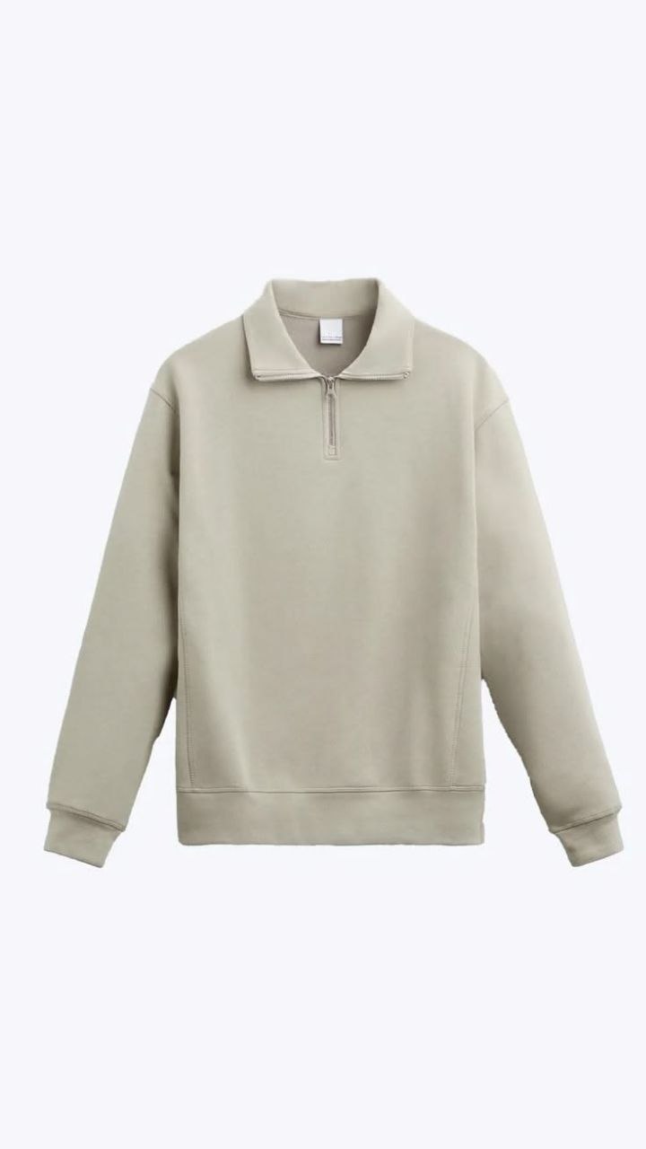 قطعة علوية بتصميم عصري وبسيط (Minimalist)، تتميز بياقة كلاسيكية تتحول إلى ياقة قائمة عند إغلاق السحاب. مصممة بكتف ساقط (Dropped Shoulder) ليعطي مظهراً مريحاً (Oversized Look