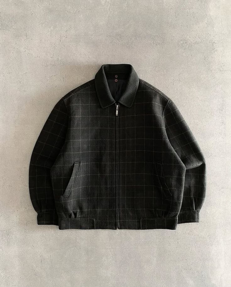 جاكيت خارجي يجمع بين التصميم الكلاسيكي الأنيق (Heritage Look) والعملية الشتوية. تعتمد القطعة على نمط المربعات الهادئ (Subtle Grid Pattern) الذي يضفي عمقاً بصرياً للتصميم دون مبالغة، مما يجعله قطعة مثالية لنمط الـ "Quiet Luxury" أو الفخامة الهادئة.